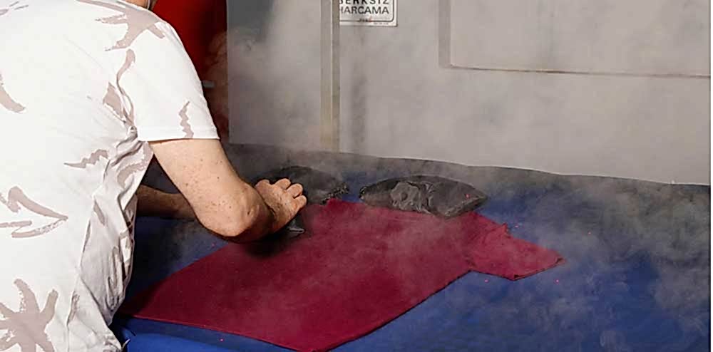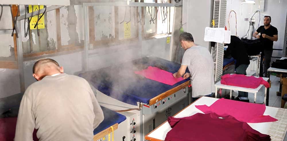 İlk aşama ütülenmesidir, 6 adet lazer beden ölçülü buharlı ütü ve el ütüsü kullanmaktayız